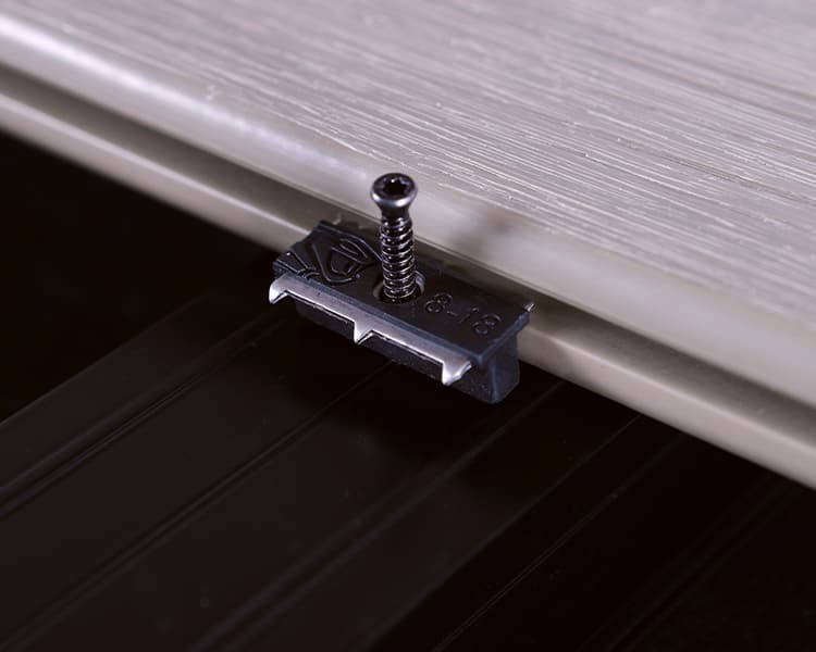 Der Cobra Hybrid-Clip ist äußerst widerstandsfähig gegen Angriffe von außen und lässt sich leicht entfernen, um die Installation unter der Terrasse zu erleichtern.