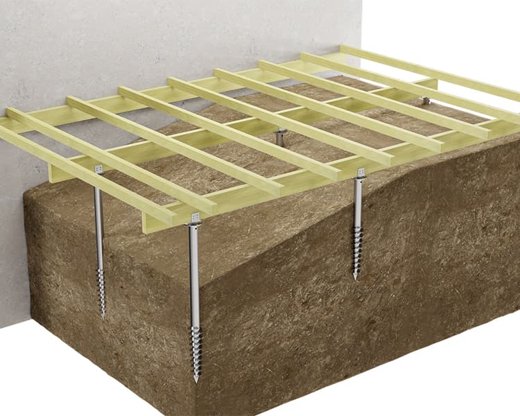 Die Fundamentschraube ist ein innovatives Konzept zur Erstellung einer Terrassenkonstruktion auf weichem Untergrund.