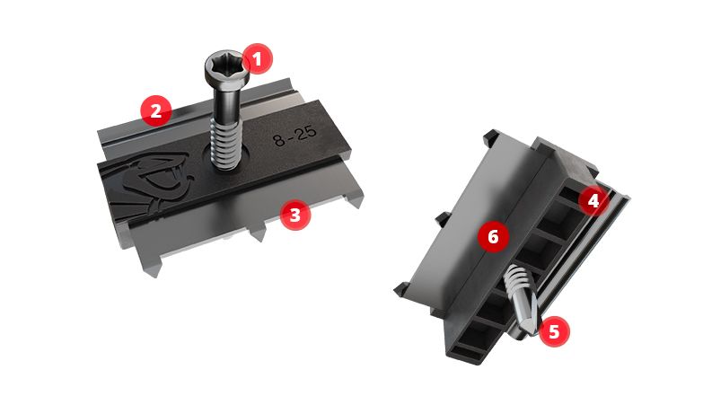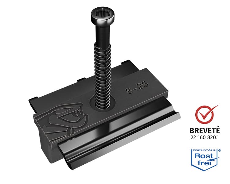 Le clip Cobra Hybrid 8-25 est universel. Il se visse sur toutes vos lambourdes, qu'elles soient en bois ou en aluminium, grâce à une vis ultra-performante et auto-foreuse. Les lambourdes en aluminium ne doivent avoir 2mm d'épaisseu minimum.