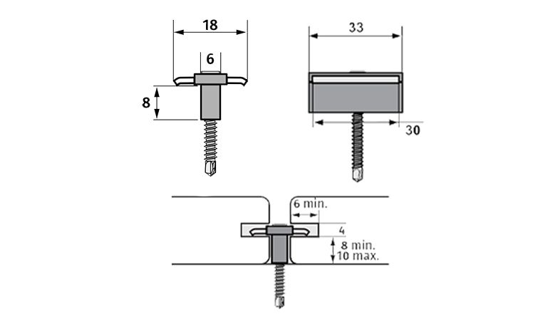 5 - Selbstbohrende Spitze, die eine Befestigung in Holz oder Aluminium ermöglicht.
